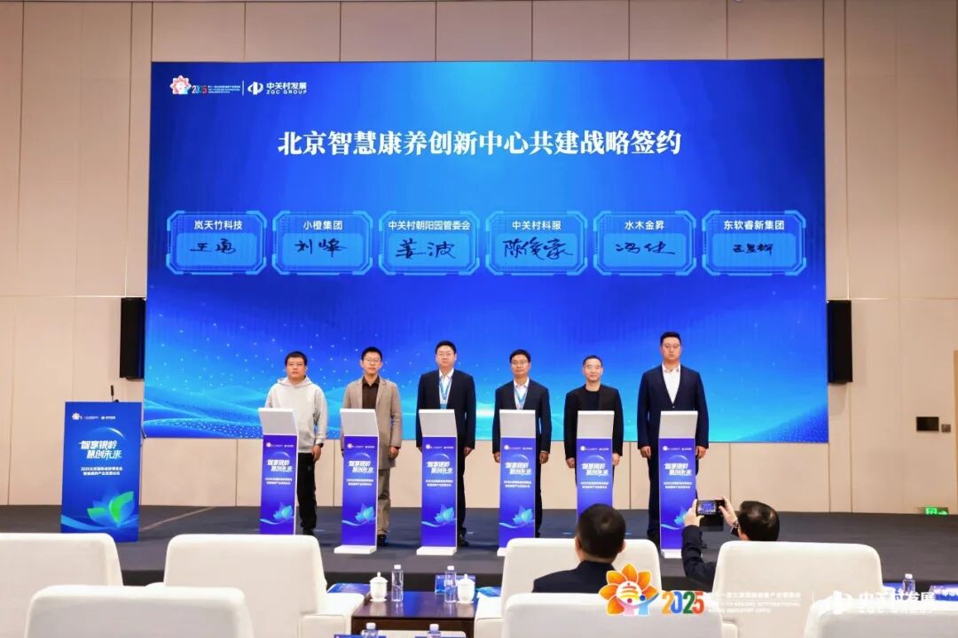活动举行了北京智慧康养创新中心共建战略签约仪式,中关村朝阳园管委会与中关村科服,携手小橙集团、水木金昇、岚天竹科技、东软睿新集团四家创新企业共同签约,标志着行业产学研用协同创新迈出坚实一步。该中心将联合高校院所、专业技术服务平台、行业头部企业等产业链生态资源,联动养老机构、医疗机构、社区驿站等真实场景,聚焦智慧康养领域的关键共性需求,建设共性技术服务平台、场景验证应用平台、产业服务平台三大功能体系,共同打造北京智慧康养产业创新生态新引擎。